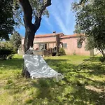 1-slaapkamer Chez Anna & Christian Appartement, gelegen op 5 km van het stadscentrum van Porto-Vecchio, biedt logeerkamers met uitzicht op de tuin. Het 16 m^2 grote appartement heeft een terras met een eettafel.